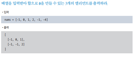 포인터를 정해놓고 리스트 인덱스를 옮겨가며, 연산 후 비교하는 로직을 구성하면 쉽게 풀 수 있으나, 문제는 세 수의 합이기 때문에 자칫 삼중 for문을 사용하는 불상사가 발생할 수 도 있다.