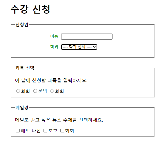 <legend>과목 선택</legend> <!-- fieldset의 제목 -->