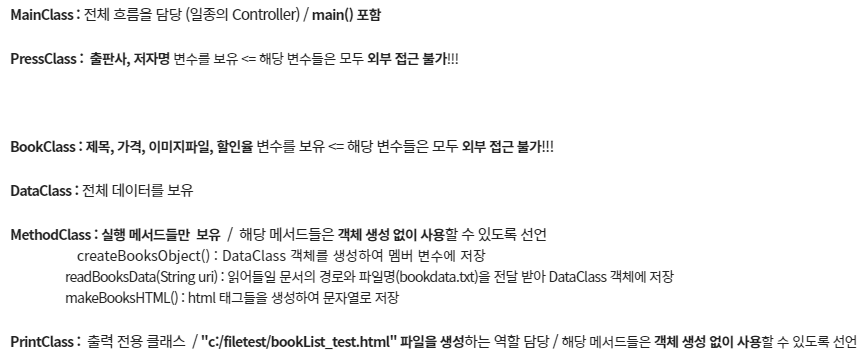 Feedback: BookClass와 PressClass의 상속을 제대로 구현하지 못하여 강사님의 코드를 보고 첨삭했다. 이외의 부분은 고칠 부분이 없이 잘 구동이 되었다.
