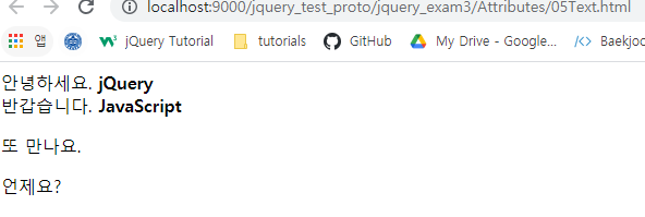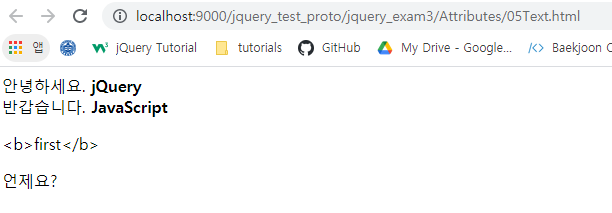 jQuery 내에서 html() 함수를 통해 마치 JS의 innerHtml처럼 html 구문을 작성할 수 있는데, 마찬가지로 text() 함수를 이용하여 비슷한 동작을 수행할 수 있다.