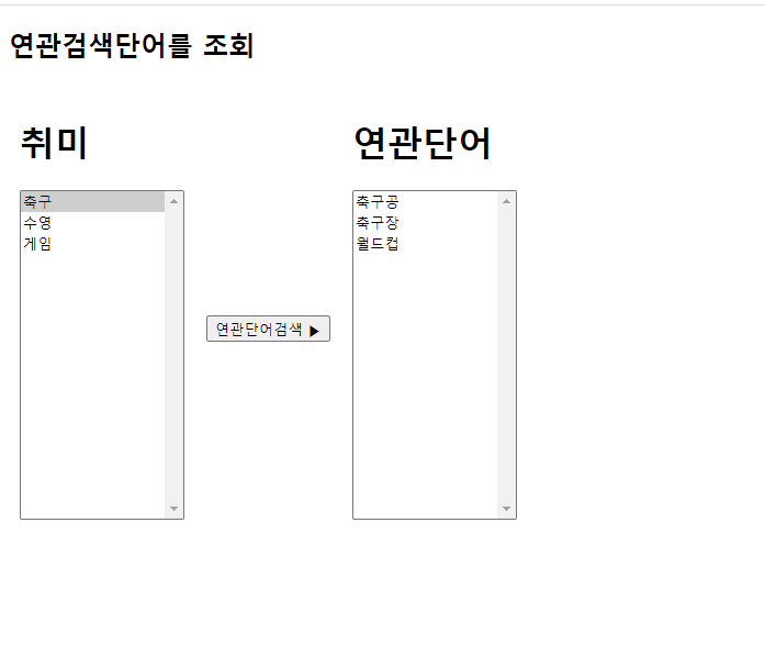 문제: #search 버튼 클릭시 ajaxCallTest4.jsp url로 ajax를 호출하여연관검색단어를 조회하여 #str에 출력.