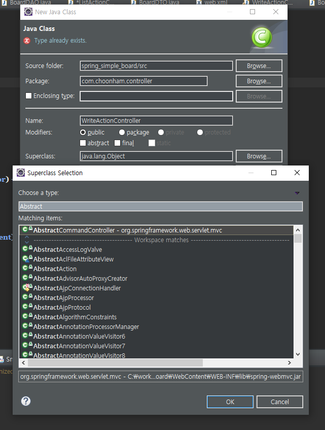 작성한 DAO를 board-servlet.xml 에 등록해야지만 사용할 수 있기 때문에 등록해준다.