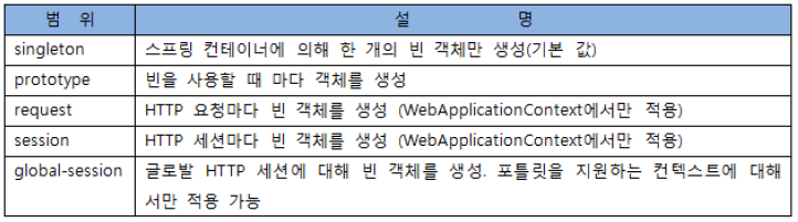즉, xml 에서 생성한 bean 객체의 Scope 기본값은 객체 맴버를 재사용하는 singleton 이다.