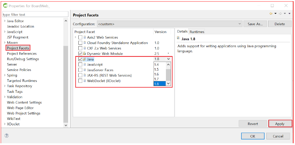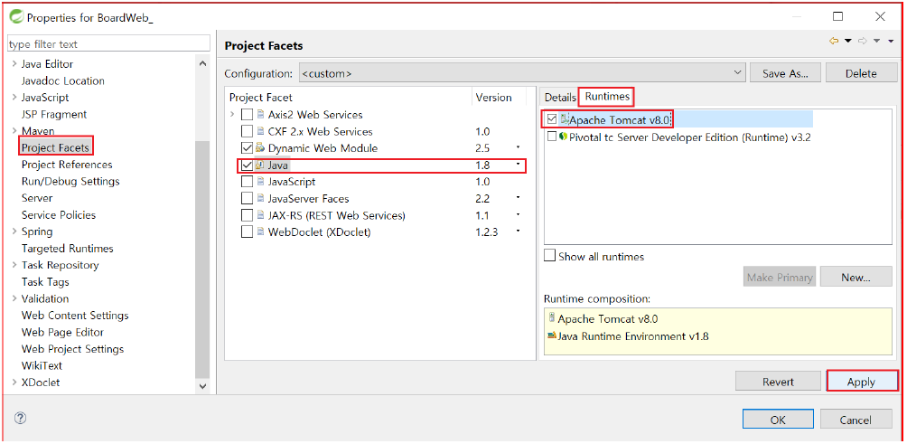 또한 아파치 서버 설정과 한글 인코딩 설정은 이클립스와 동일하게 진행하면 된다.