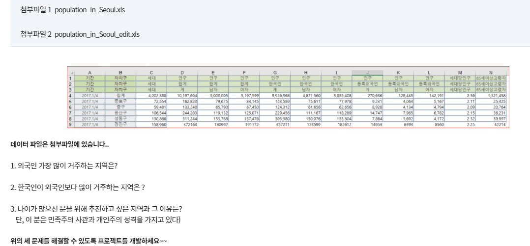 주어진 엑셀 파일을 이용하여 1번부터 3번까지 문제에 대한 정답을 HTML 파일로 만들어 출력하는 프로젝트이다.