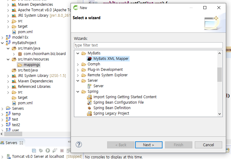 우선 Mybatis를 사용한 프로젝트를 생성하기 위해, STS(Eclipse) Marketplace에서 MyBatipse 를 다운로드하여 사용해야 한다.