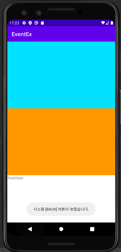 Toast.makeText(this, "시스템 [BACK] 버튼이 눌렸습니다.",