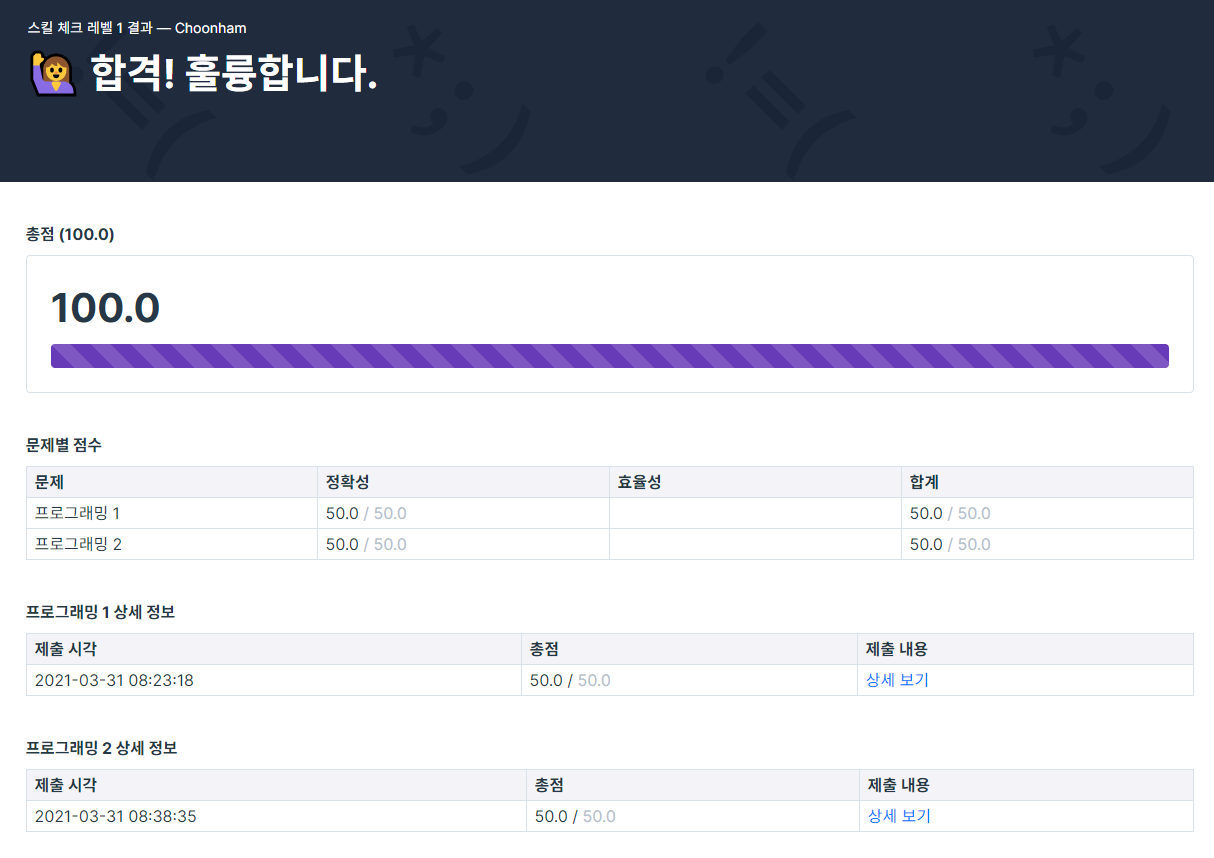 오늘은 Heap의 LV3 문제를 하나 푸려고 프로그래머스에 접속을 했는데, 평소에는 보이지도 않던 실력 체크라는 탭이 눈에 들어왔다. ㅎㅎ... 코테 문제를 풀기 시작한 지 이제 2주 정도 접어들었는데, 내 실력은 어느 수준일까? 한번 확인해보고 싶기도 하고, 괜한 호기심이 생겨서 가볍게 LV1부터 풀어보기로 했다.