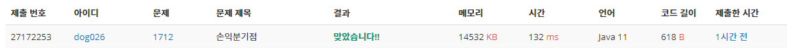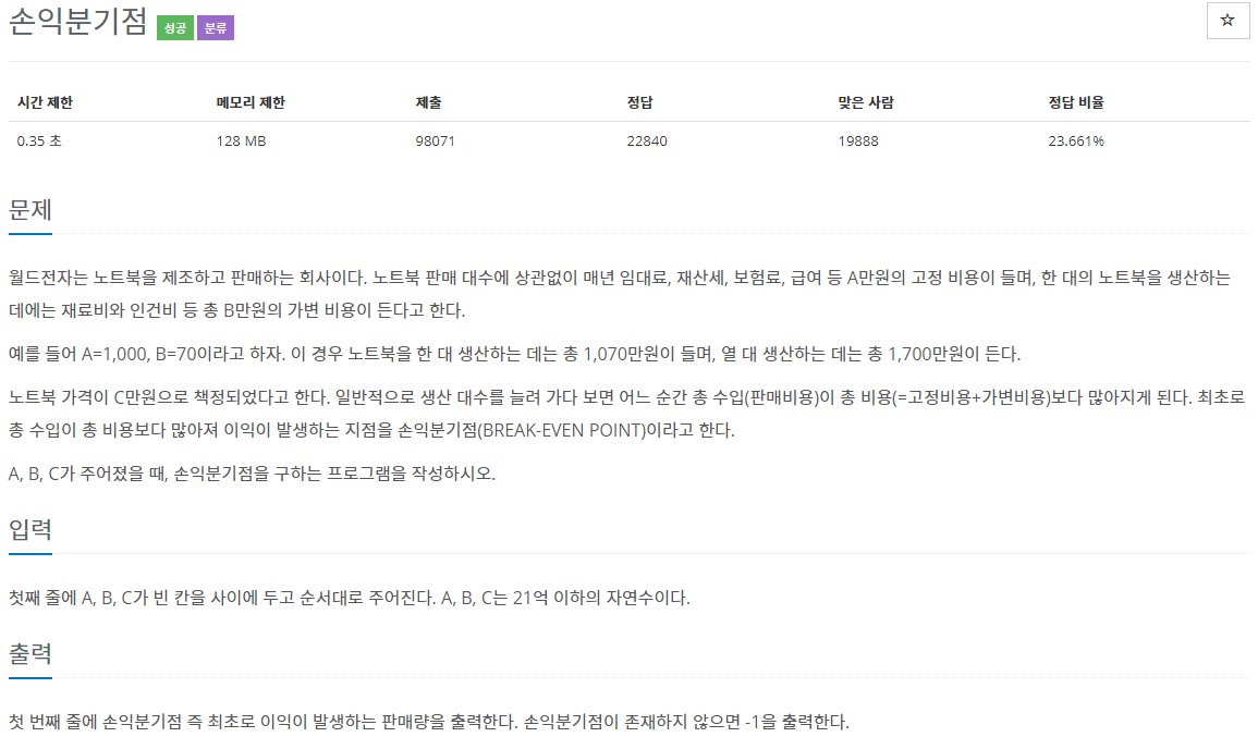 조건1. 노트북의 가격이 가변비용과 같거나 더 저렴할 경우, 절대 손익분기점을 넘을 수 없다. 출력은 -1.