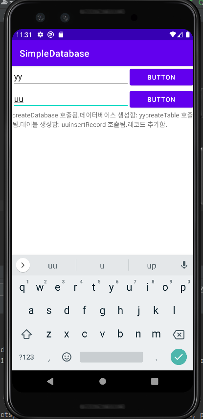 또한 SQLiteDatabase 객체에서 가장 중요한 메서드 중 하나는 execSQL() 이며, SQL 문을 실행하기 위해 사용한다.