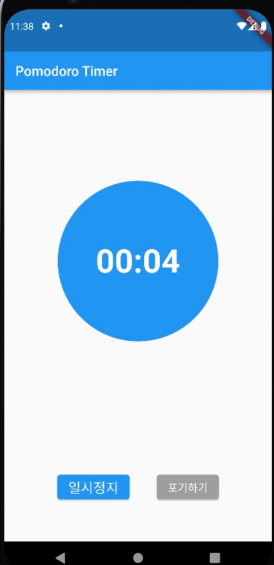 또한 집중 시간이 모두 끝났을 때, 휴식으로 돌아가는 부분도 문제없이 잘 작동한다.