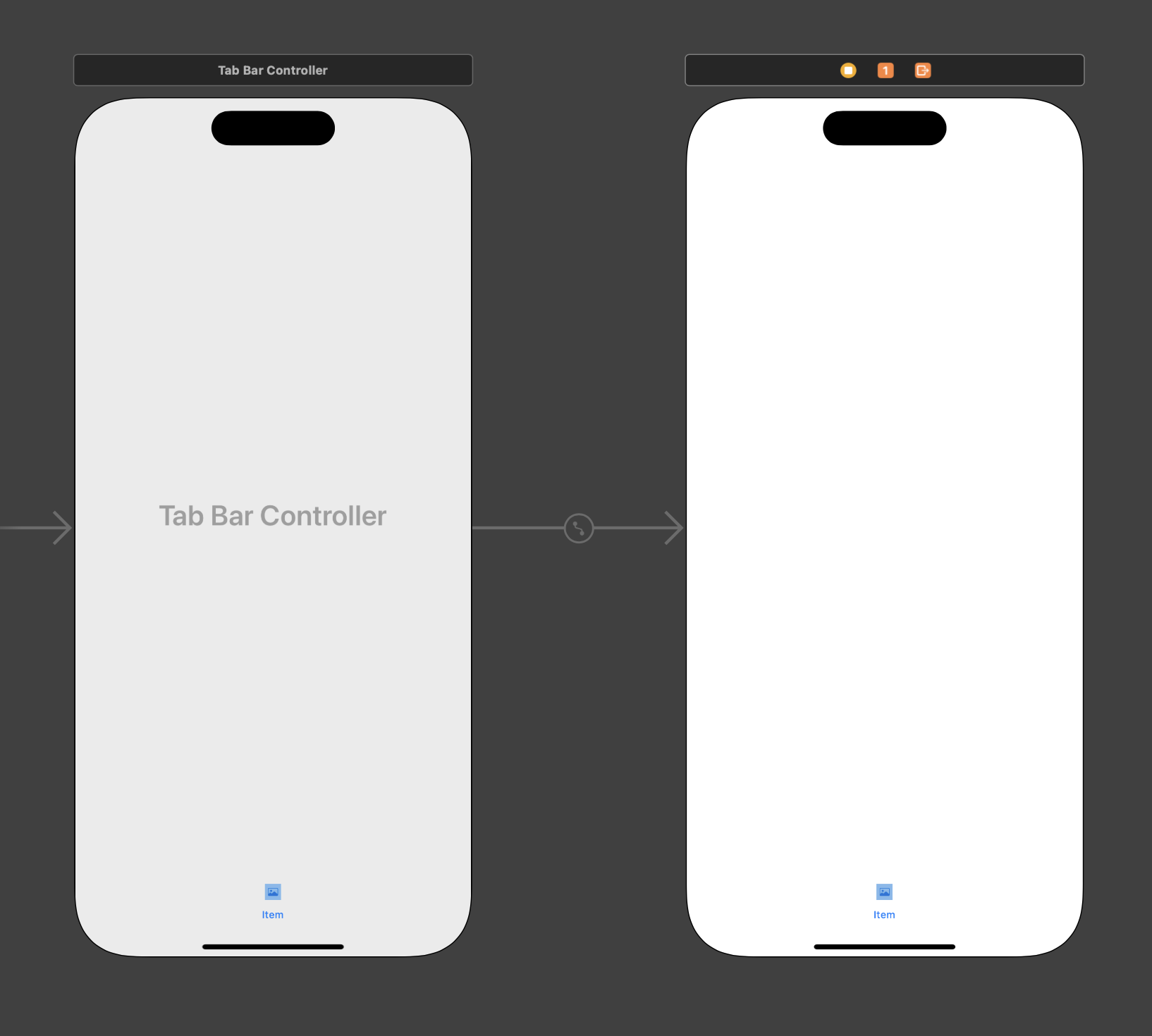 마지막으로 Tab Bar Controller가 추가된 View들을 가지도록 Command 키를 누르고 연결시켜주기만 하면, 굉장히 간단하게 탭 바에 연결시켜 하나의 앱에서 각 뷰를 전환할 수 있게 된다.