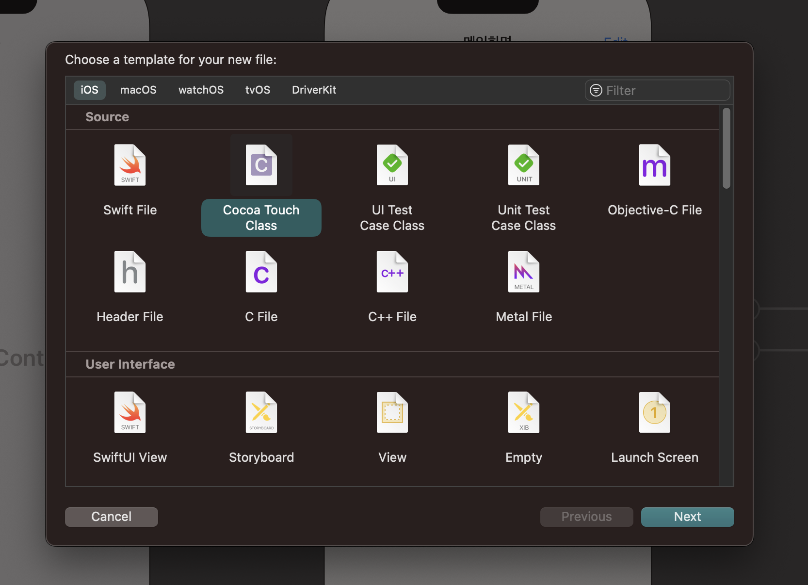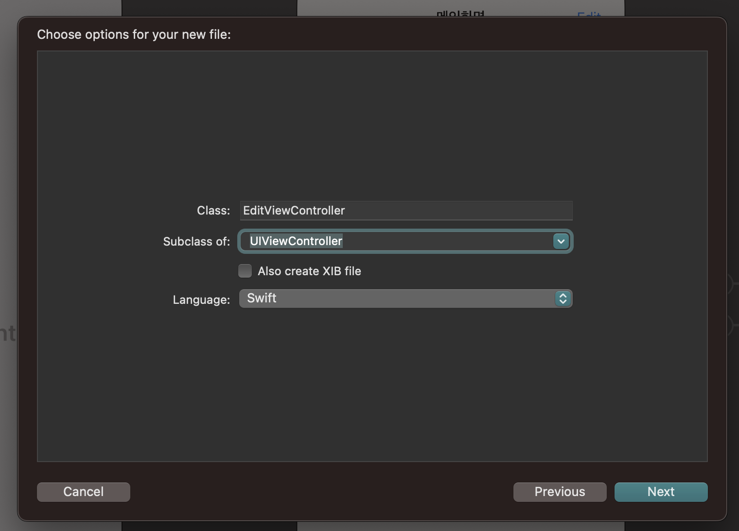 이제 새로 생성된 View Controller의 소스 코드를 입력할 파일을 추가하고 해당 View Controller에 연결해주자.