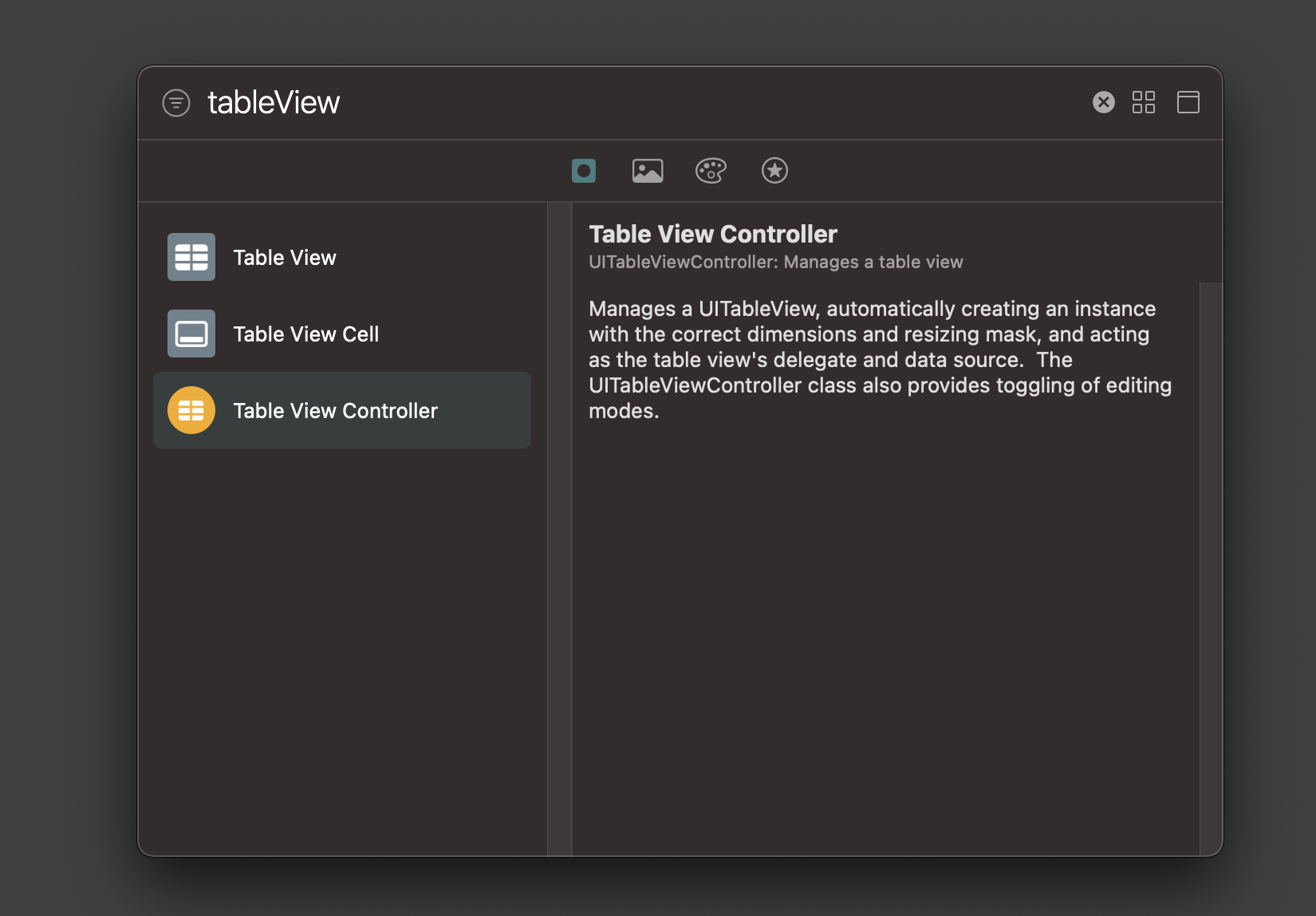 이후에 Table View Contoller를 라이브러리 목록에서 찾아 추가한다.