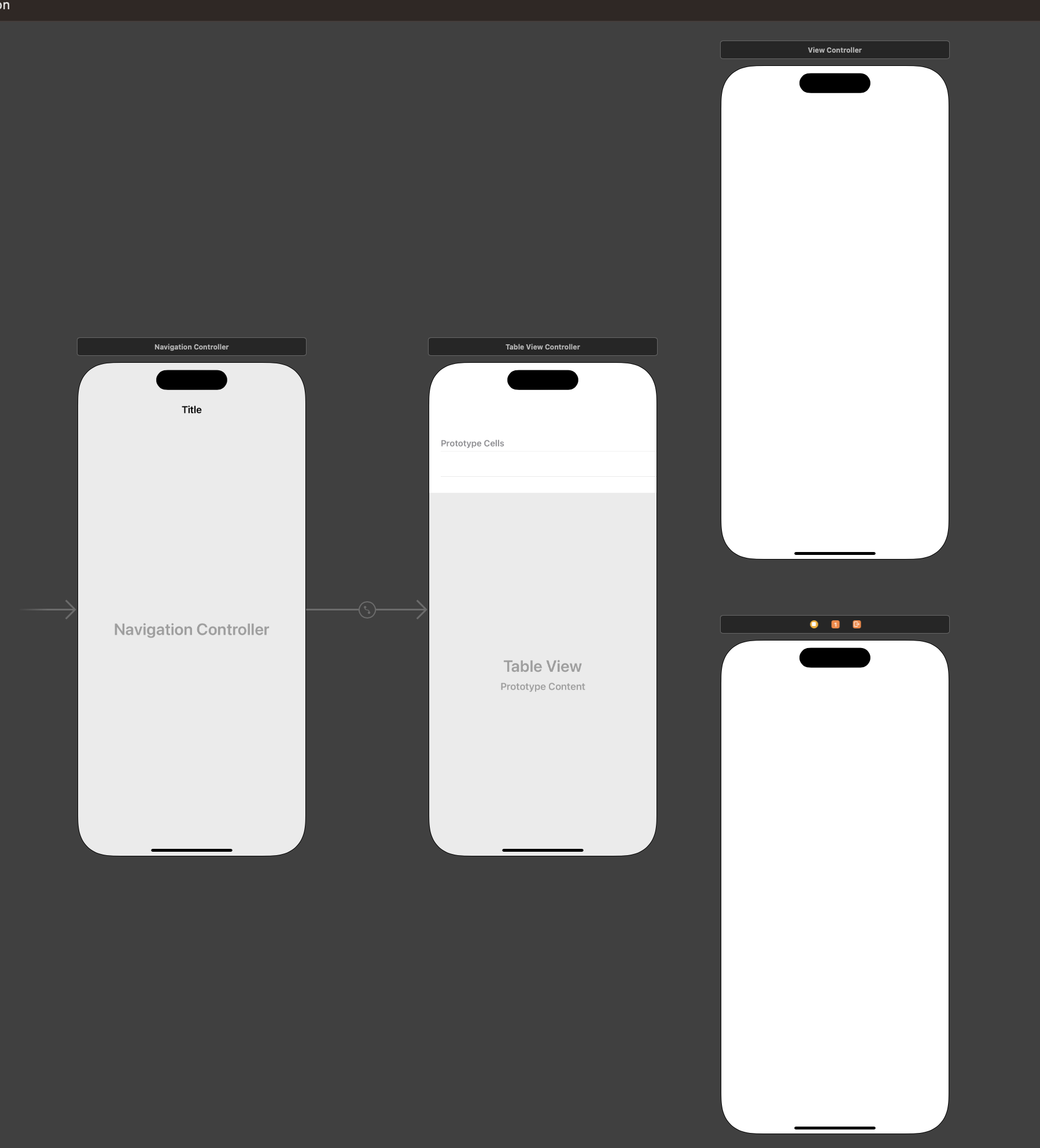 이제 각 View의 타이틀을 입력해주고, 아래와 같이 스토리보드를 구성해준다.