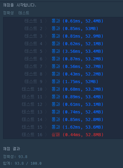 음.... 문제를 보자마자 짠 코드이고, 성공한다면 역대급 빠른 시간으로 LV2 문제를 푼 건데....