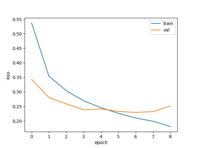 이제 그래프를 그려 검증 손실과 한번 비교해보고, 조기 종료가 잘 이뤄졌는 지 확인하자.