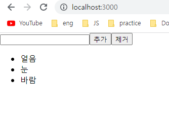 입력창에 입력된 데이터를 버튼을 눌렀을 때, names 배열에 다음 아이디와 함께 추가시킨 뒤에 아이디 값을 +1, 입력 텍스트를 공백으로 만드는 정도의 코드이다.