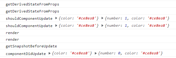 이 컴포넌트는 각 라이프사이클 메서드를 실행할 때마다 콘솔 디버거에 기록하고, 부모 컴포넌트에서 props로 색상을 받아 버튼을 누르면 state.number 값을 더하는 기능을 한다.