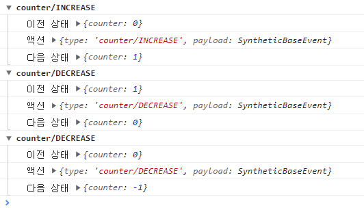 console.group(action && action.type); // 액션 타입으로 log를 그룹화함