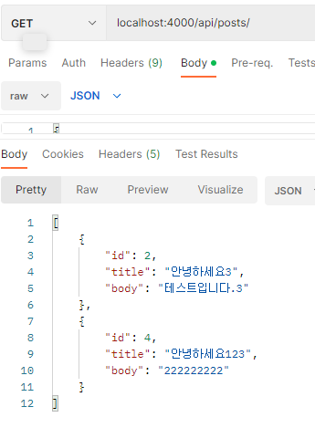 테이블과 맵핑된 모델이 있고, DB연결도 끝났으니 post 컨트롤러에서 이전에 임시로 만든 배열을 제거하고 아래와 같이 DB 테이블에 대한 CRUD 작업을 구현해주자.