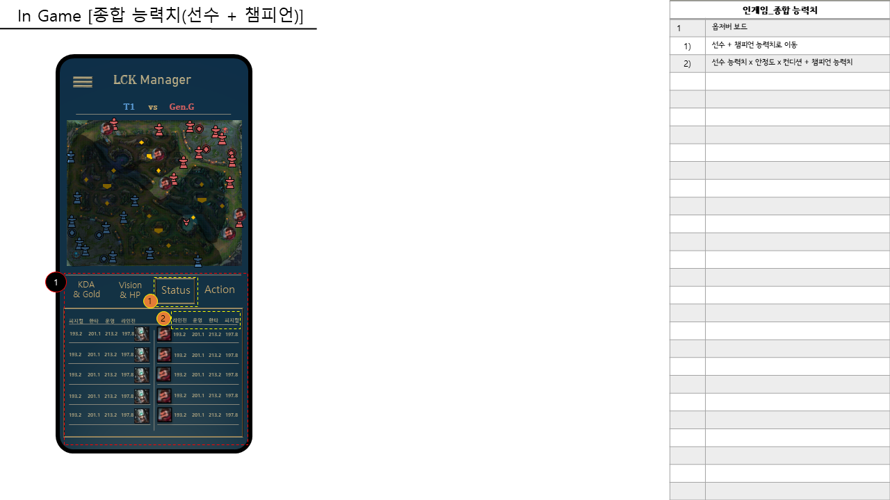 이런 시뮬레이션 게임의 경우, 데이터 수집이 정말 중요해서.... 각 선수들의 승률이나 사용 챔피언, 시즌별 챔피언 성능 등의 데이터를 정말 열심히 수집하고 기획했는데, 막상 다시 기획서를 보니까 갑자기 좀 설레긴 한다..ㅋㅋㅋ