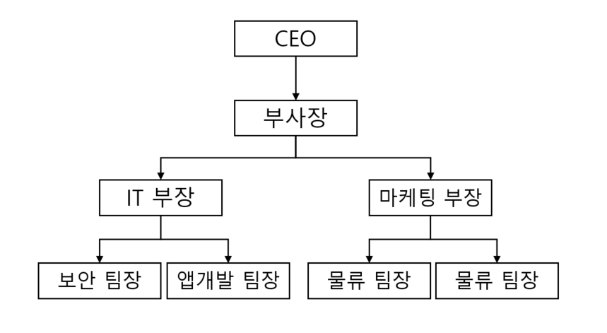 우선 가장 기본적인 형태의 이진 트리로 아래와 같은 조직도를 구현하려고 한다.