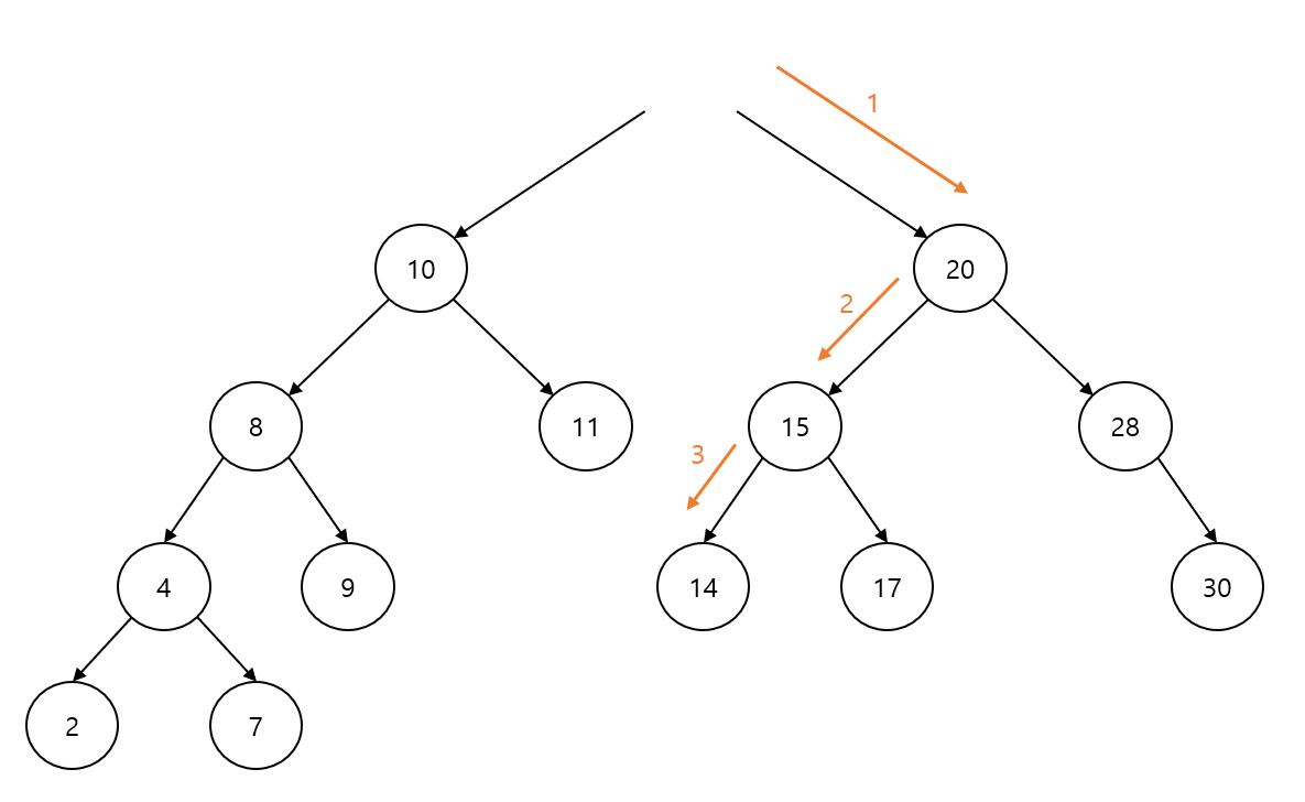 따라서 원소 검색을 위해 루트 노드부터 차례대로 값을 비교하는 경우, 각 단계마다 검색 범위가 절반으로 줄어든다.
