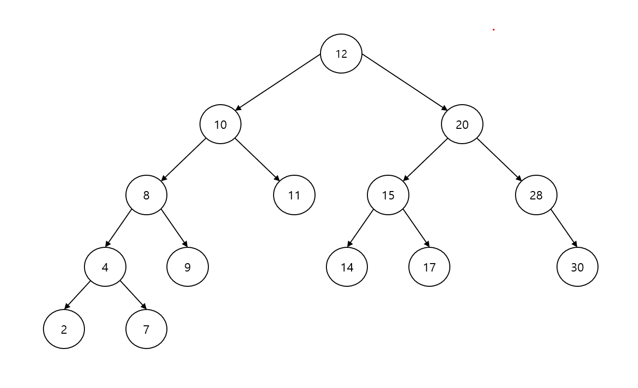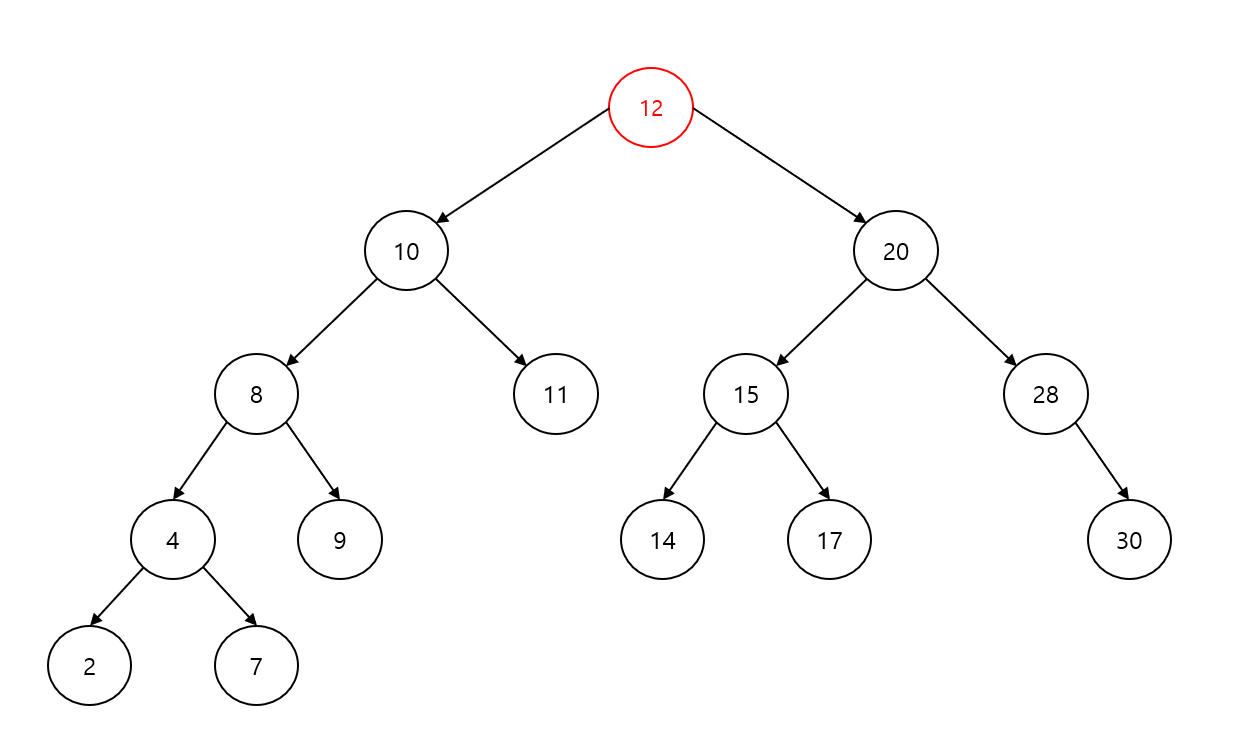 12를 삭제한 후 중위 순회: 2 4 7 8 9 10 11 14 15 17 20 28 30