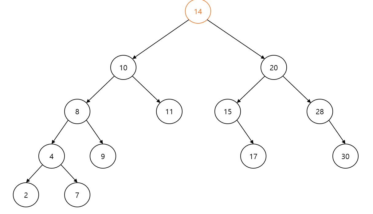 중위 순회: 2 4 7 8 9 10 11 12 14 15 17 20 28 30