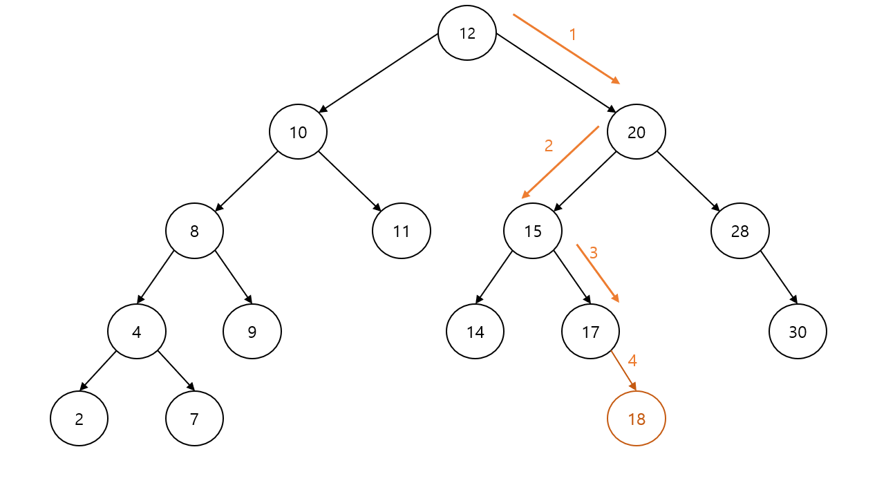 18을 예제 트리에 넣어보면, 아래와 같이 삽입할 수 있다.