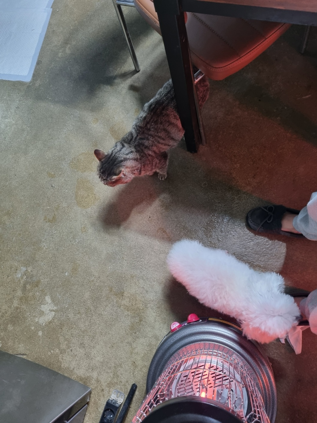 그래도 밖은 추운지, 한참 돌아다니고 난로 앞에 자리를 잡아주면 한 1분만에 곯아떨어지신다고 한다...ㅋㅋㅋㅋ