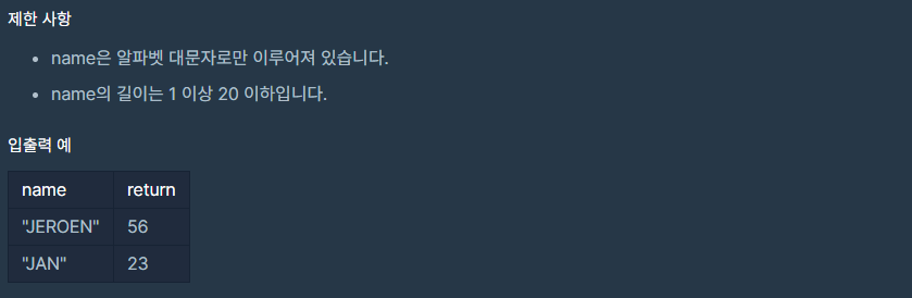 int temp = (int) name.toCharArray()[i]; // 아스키코드 형변환