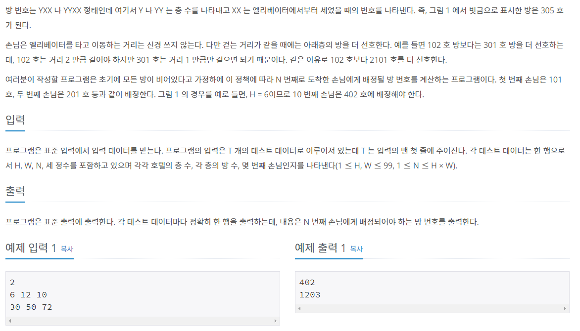 문제를 보자마자 무의식적으로 이중배열을 사용하여 문제를 풀려고 했었다. 이중배열 선언 후, 하나하나 메모리를 할당해주어 방번호를 지정하여 알아내는 방법을 사용하면, 확실하게 구현이 가능했으나, 이건 속도적, 메모리적으로 매우매우매우 비효율적인 방법이다.