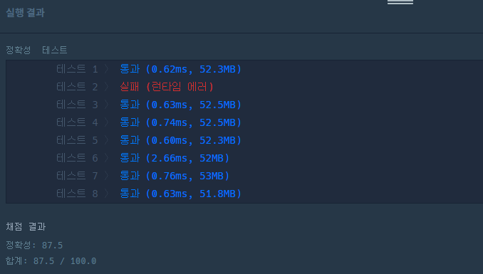 다행인 건 딱 1개의 테케가 다른 원인도 아니고 "런타임 에러" 라는 것이다. 런타임 에러는 경험상 사이즈가 작은 테스트 케이스를 몇개 넣어보면 바로 이클립스가 에러를 뱉어서 찾아낼 수 있다는 건데...