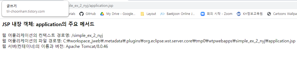 JSP의 내장 객체인 application을 이용하여 현재 작업 중인 Web Application의 상세 정보를 알 수 있다.