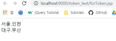 <c:forTokens var = "city" items = "서울.인천, 대구.부산" delims = ",">