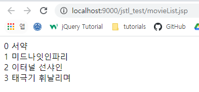 값을 여러 개 꺼내서 반복 출력하는 예제도 있다. varStatus 를 이용하여 마치 이터레이터를 사용하는 것처럼 작성이 가능하다.