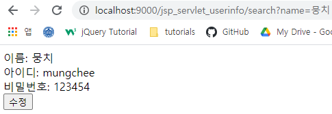 수정을 클릭하여 UserInfoEdit.jsp로 이동할 수 있다.