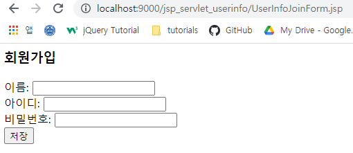 회원가입 페이지이며, 저장을 클릭하여 InsertServlet.java로 이동하여 회원가입 메서드를 호출한다.